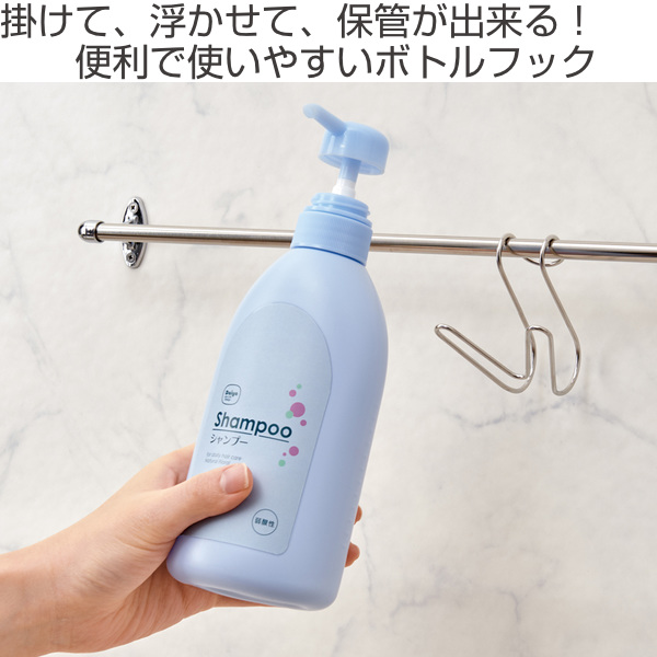 ステンレスフック KARARAボトルフック 洗面収納 引っ掛け フック ( ボトルラック ステンレス製 ボトルホルダー 浴室 タオルバー タオル掛け 浮かせて収納 シャンプー ボトル ディスペンサー サビにくい 収納 )