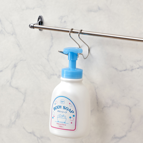 掛けることで乾きも良く、快適で清潔なバスルームが長続きします。また、ボトル底が床に付かないので、ボトル底のヌメリなども気になりません。