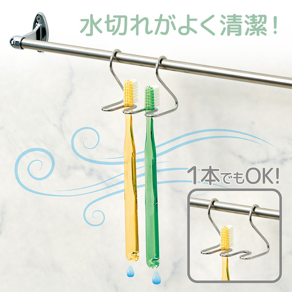 掛けて収納できるので、水切りが良く、乾きやすいので、清潔を保つことが出来ます。1本だけでもご使用いただけます。