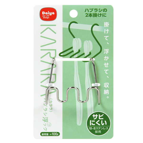 「KARARA」ステンレスフックシリーズの歯ブラシフックです。歯ブラシ2本を浮かせて保管することが出来ます。