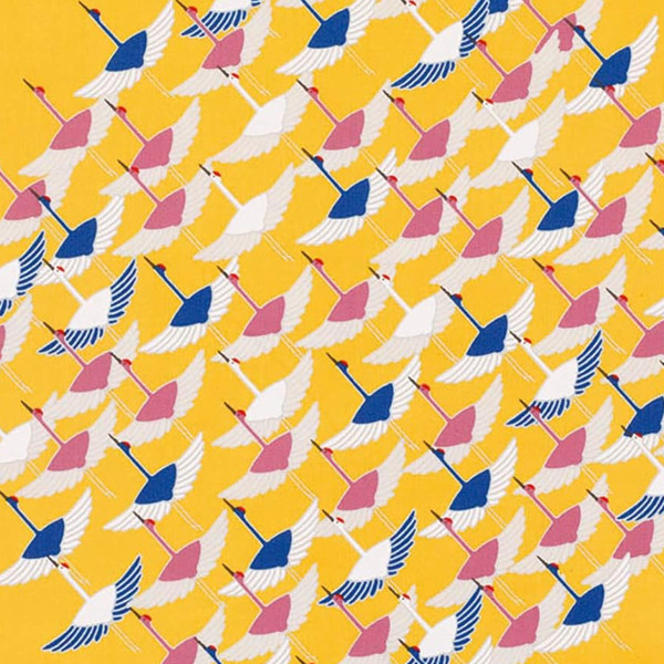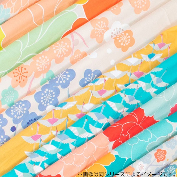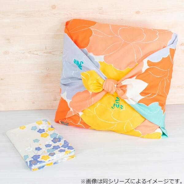 フランス人デザイナーのアデリーヌ・クラムとのコラボレーションによって作られた風呂敷です。伝統的なモチーフを独特の色彩で表現し、平面でも、包んでも美しく見えるデザインです。日本のモチーフとフランスの色彩の出会いにより、現代のインテリアやファッションとも相性が良く、もちろん和風のテイストにもフィットします。
