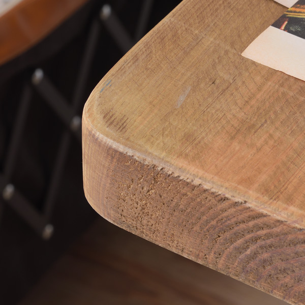 素朴で柔らかい印象のパイン古材を使用しています。古材の穴や傷をあえて残すことで、古材ならではの豊かな風合いを醸し出しています。古材の一つ一つ異なる表情をお楽しみください。