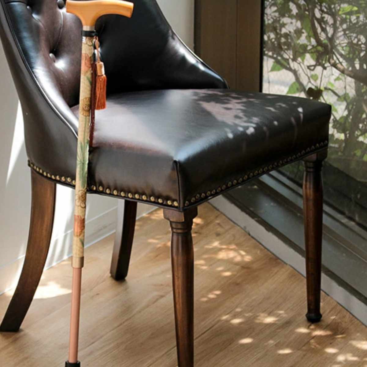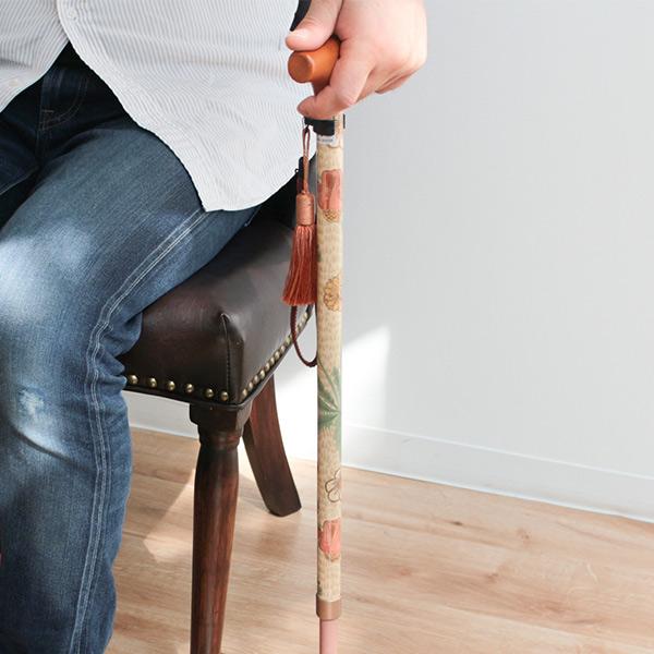 杖全体でお部屋の中を表現し、シャフトは壁を、下部はフローリングの床を、タッセルはカーテンをイメージしています。