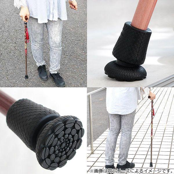 濡れた地面でも密着しやすい構造のため、一般的な先ゴム(下の画像)よりも滑りにくく、安全に歩行できます。