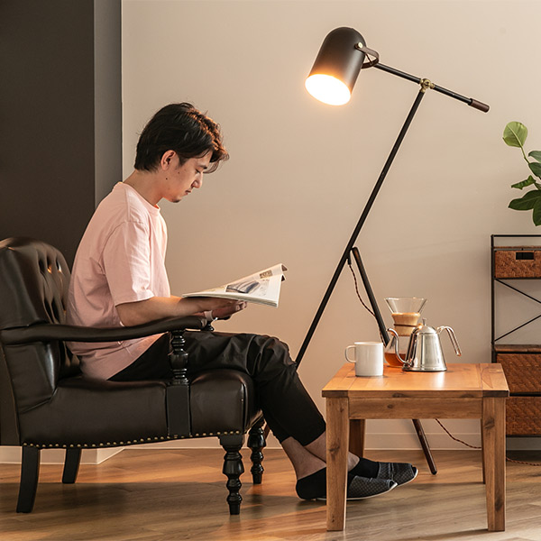 アンティーク感漂うブラックボディが、ブルックリンやインダストリアルな雰囲気のお部屋によく合います。ブラックスチールの無骨さがお部屋の印象を引き締め、リビングや寝室の間接照明として最適です。