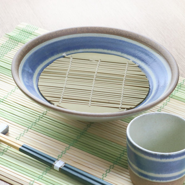 丸型の竹すのこです。同じシリーズのそば皿と組み合わせて、ざる蕎麦やざるうどんを楽しむことができます。お豆腐やお刺身の水切りにも使えるので、ひとつあると便利です。