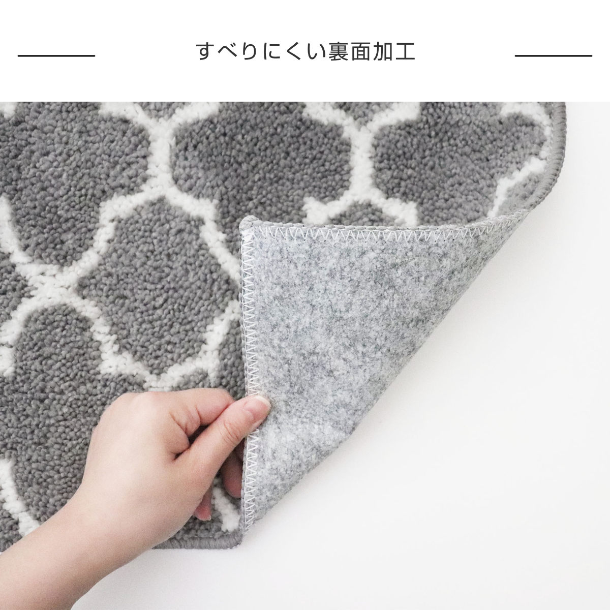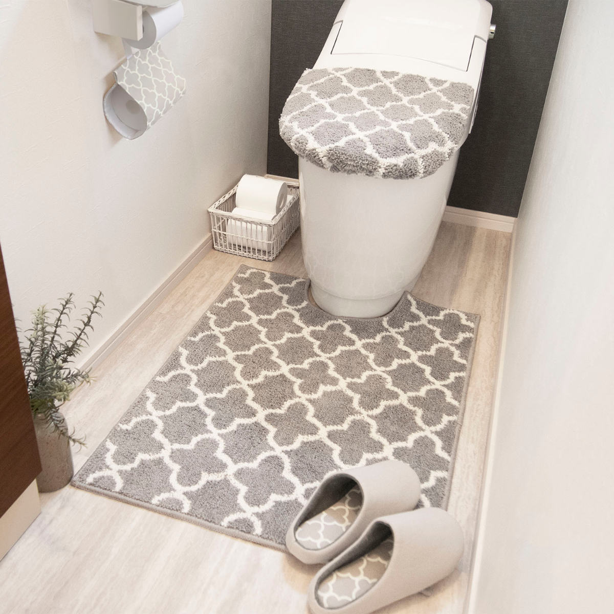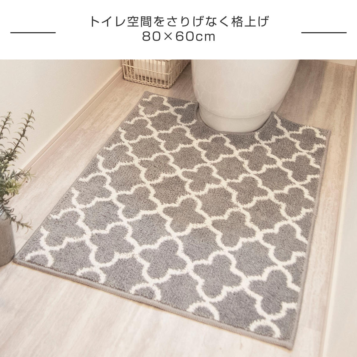 モロッカン柄の上品なデザインが、トイレ空間をさりげなく格上げしてくれるトイレマット80×60cmです。ふんわりとした踏み心地とサラッとした触感で、毎日快適にお使いいただけます。シンプルながら存在感があり、ナチュラルからモダンまで幅広いインテリアになじみます。毎日使うトイレ空間に、季節を問わない心地よさをプラスします。