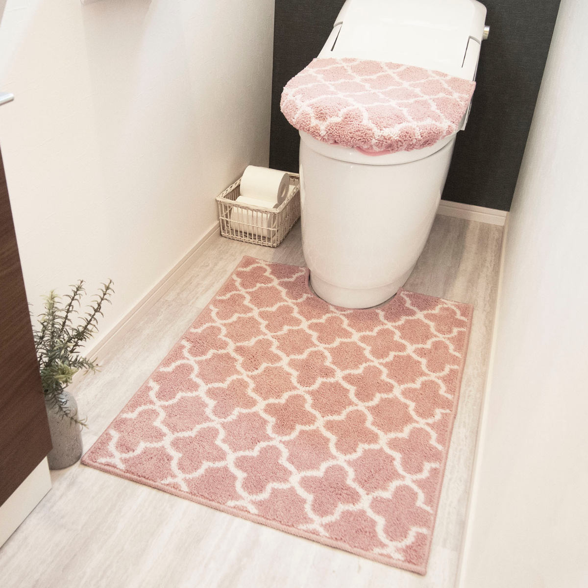 トイレマット 80×60cm モロッカントイレマット ( ロングトイレマット トイレ マット モロッカン 洗える 単品 マットのみ モロッカン柄 滑り止め すべり止め 80×60 トイレ用マット 80 ) 【ピンク】