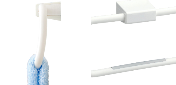 | タオルが壁に着かない 壁との間にすき間ができる設計なので、タオルが壁につかず衛生的です。 | ズレ落ちにくい タオルバー部には滑り止め加工が施されているので、タオルがずれ落ちにくく快適にお使いいただけます。 |