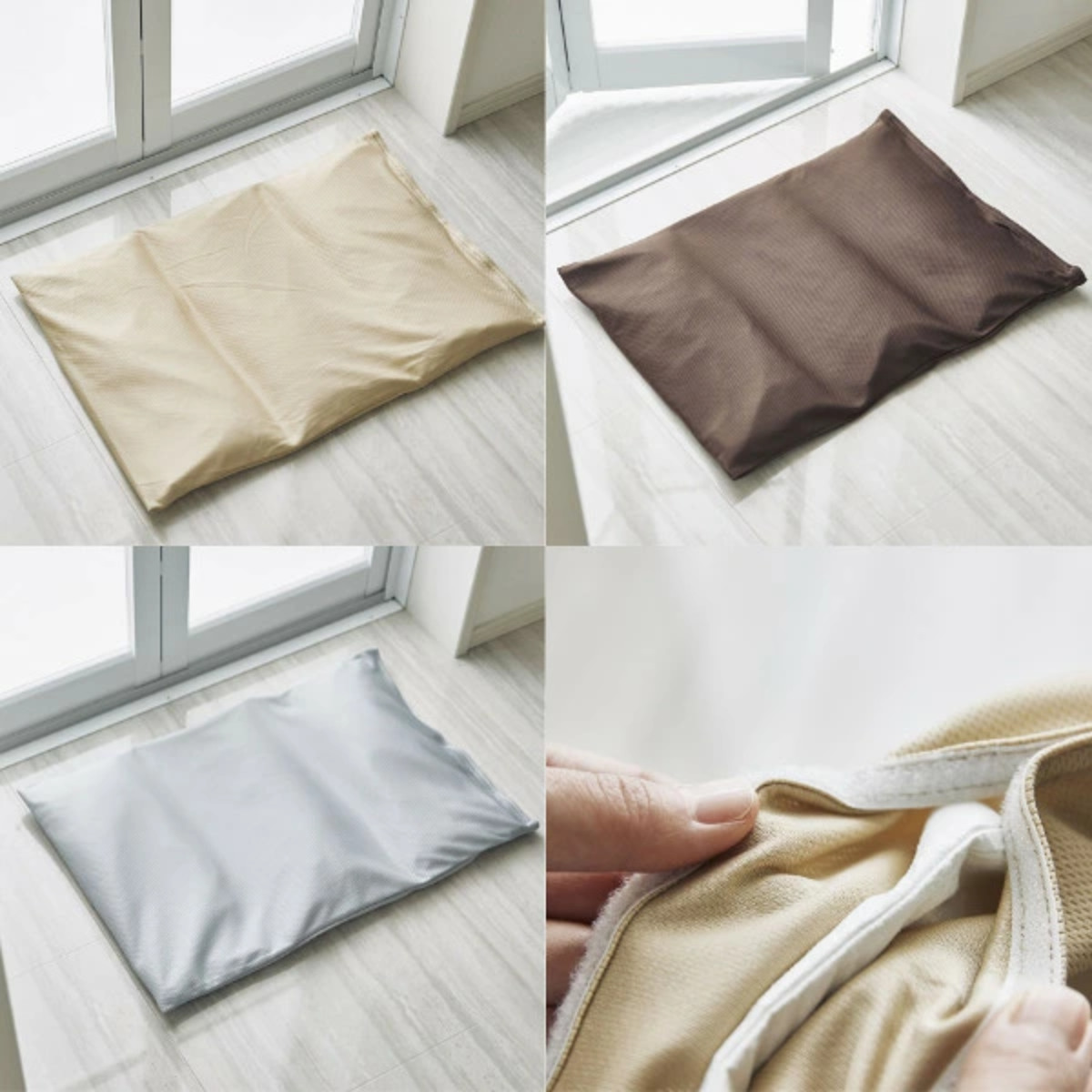 | カバーが取り外せる カバーの取り外すことができて、マット本体とカバーをそれぞれ別々に干して乾かすことができます。 | 洗濯機で丸洗いOK! 付属のマットカバーは外して丸洗いができるので、いつでも清潔にお使い頂けます。 |