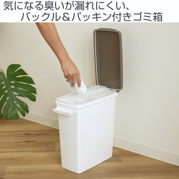 素材に消臭剤が練りこまれているので、気になる臭いが漏れにくいです。ぐるっと囲んだパッキンとしっかりロックできるバックルが、生ゴミや赤ちゃんのオムツ・ペットシーツなどのニオイをおさえてくれます。また、パッキンは取り外し可能で常に綺麗に保つ事ができます。