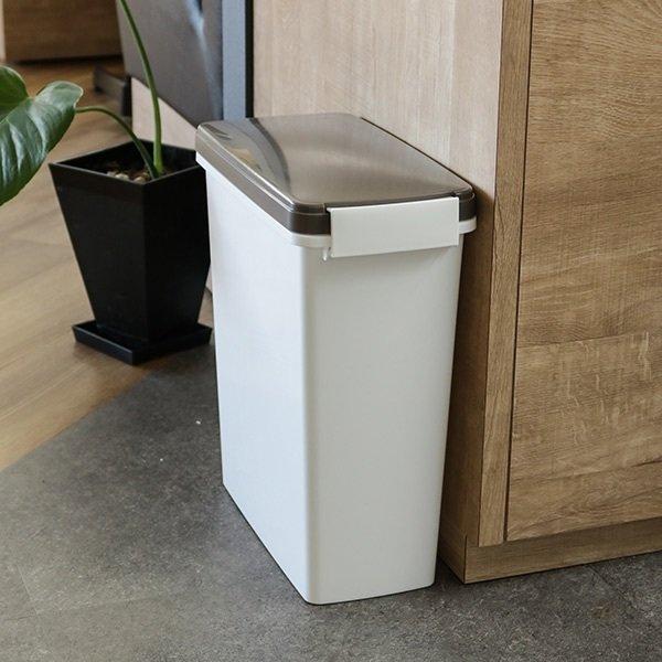 幅約17cmと大変スリムなので冷蔵庫横など、キッチンの気になるデッドスペースに設置する事ができます。また、無駄のないスタイリッシュなフォルムのゴミ箱は、空間のイメージを邪魔しないシンプルなデザインです。