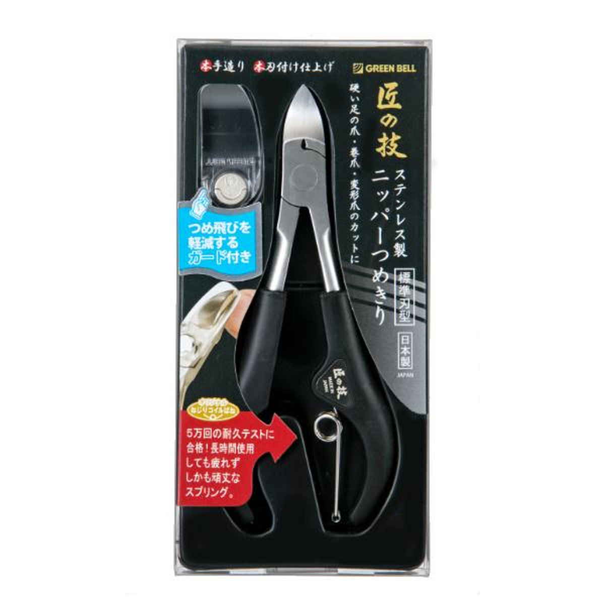 爪切り ニッパー 爪飛びガード付き 匠の技 日本製 ( 爪きり つめきり ネイルケア 爪飛びカバー付き 巻き爪 足の爪 ツメ 固い爪 変形した爪 ニッパータイプ バネ 切りやすい こだわり 職人 切れ味 長持ち 爪 飛び散らない )