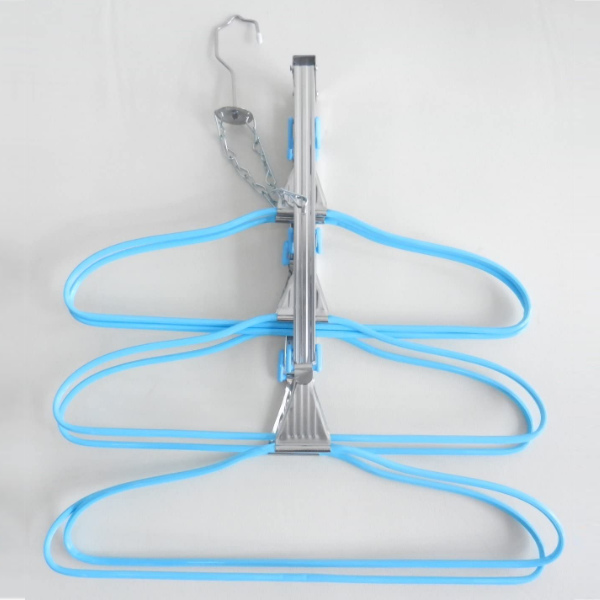 折りたたみ式の6連ハンガーです。一度に6枚のシャツが掛けられるので、物干し竿のスペースを有効活用できます。
