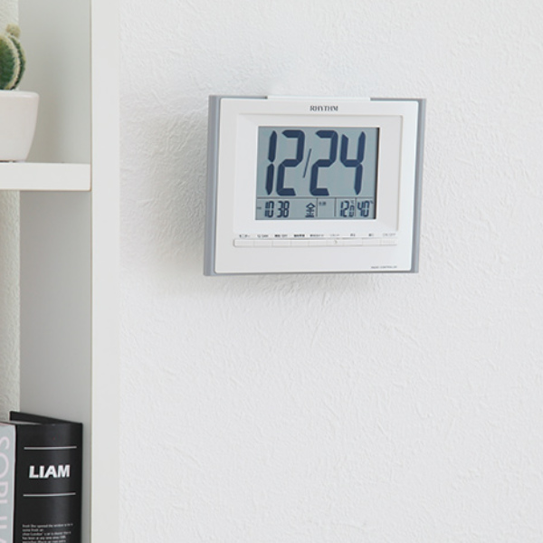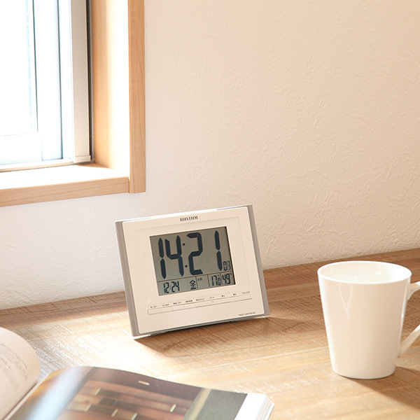 目覚まし時計 デジタル電波時計 掛置き兼用 フィットウェーブ ( 壁掛け時計 置き時計 デジタル 時計 インテリア 雑貨 掛け置き両用 カレンダー 温度 湿度 アラーム 電波 見やすい 壁掛け 卓上 明るさ アラーム音 4段階調節可能 )