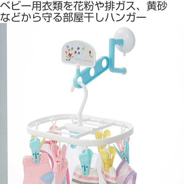 室内干しが出来るベビー用のピンチハンガーでピンチが10個付いています。花粉や黄砂、排気ガス、PM2.5などを防ぐことができ、汚れの付着を防げます。赤ちゃん用の衣類を外で干したくないという方におすすめです。