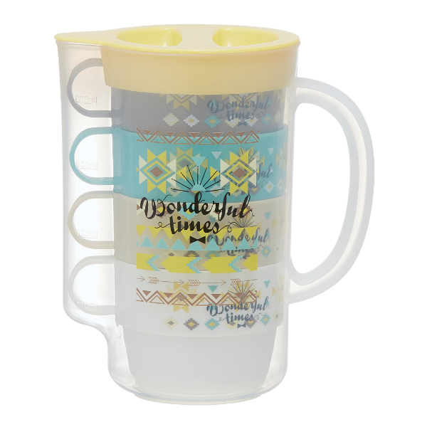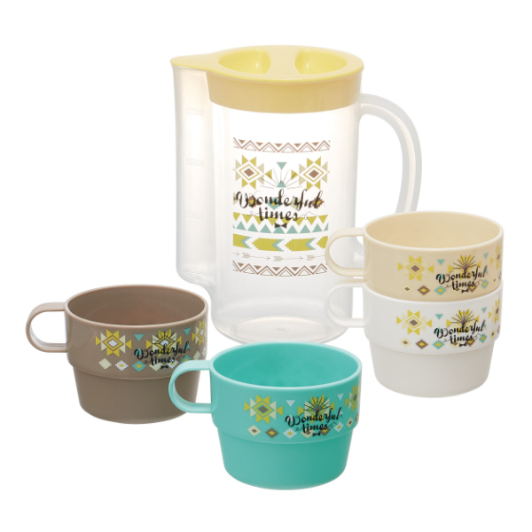 コップ アウトドア ケース付 ワンダフルタイム スタッキングコップ 4個セット ( カップ プラスチック プラカップ ピッチャー付き スタッキング 4個 プラコップ 軽い 軽量 取っ手付き 割れにくい 持ち手付き プラスチック製 )