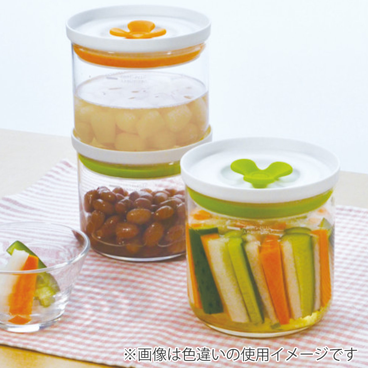 ●ガラス製で酸に強く、色やにおいが付きにくいので、お漬物やピクルスなどの保存に向いています。