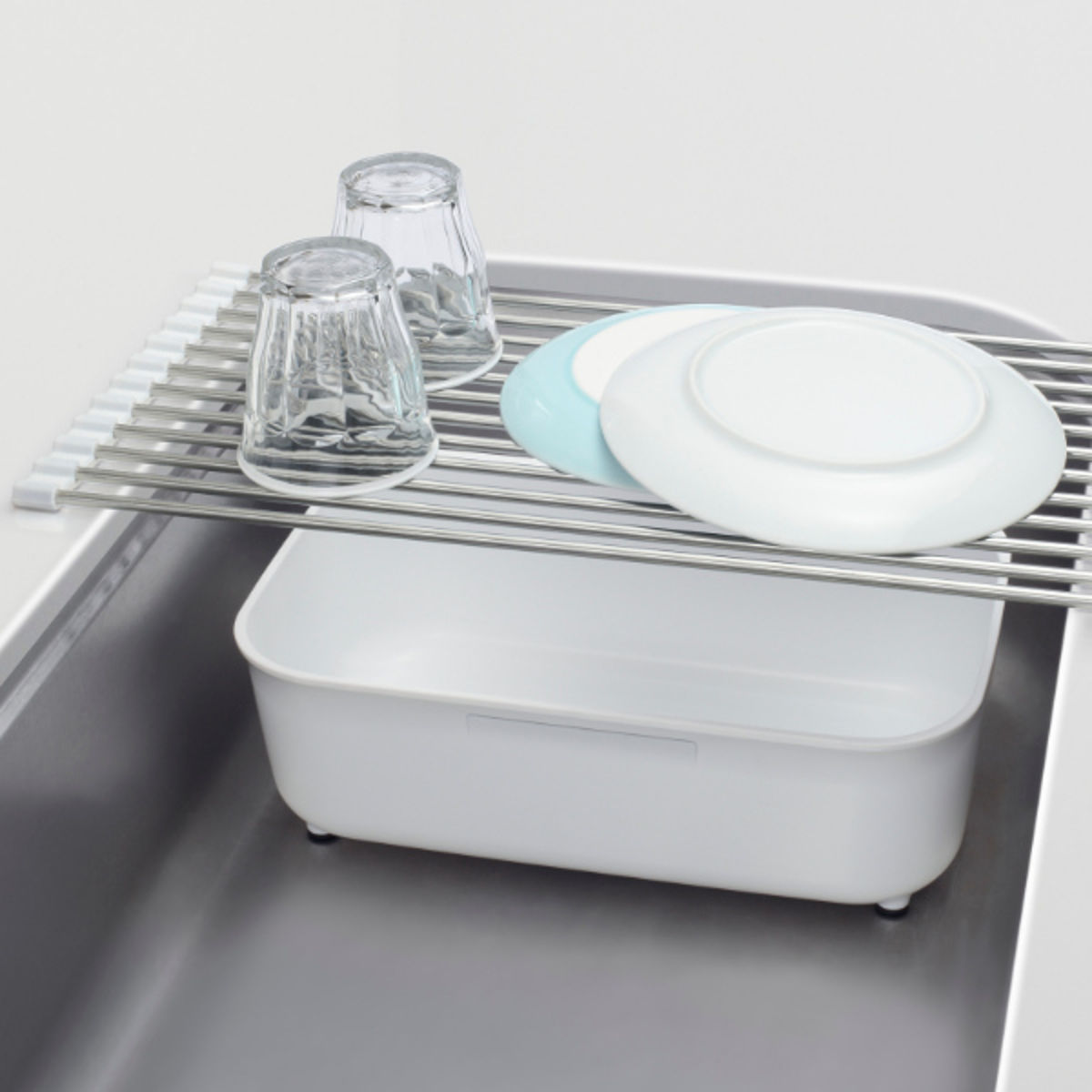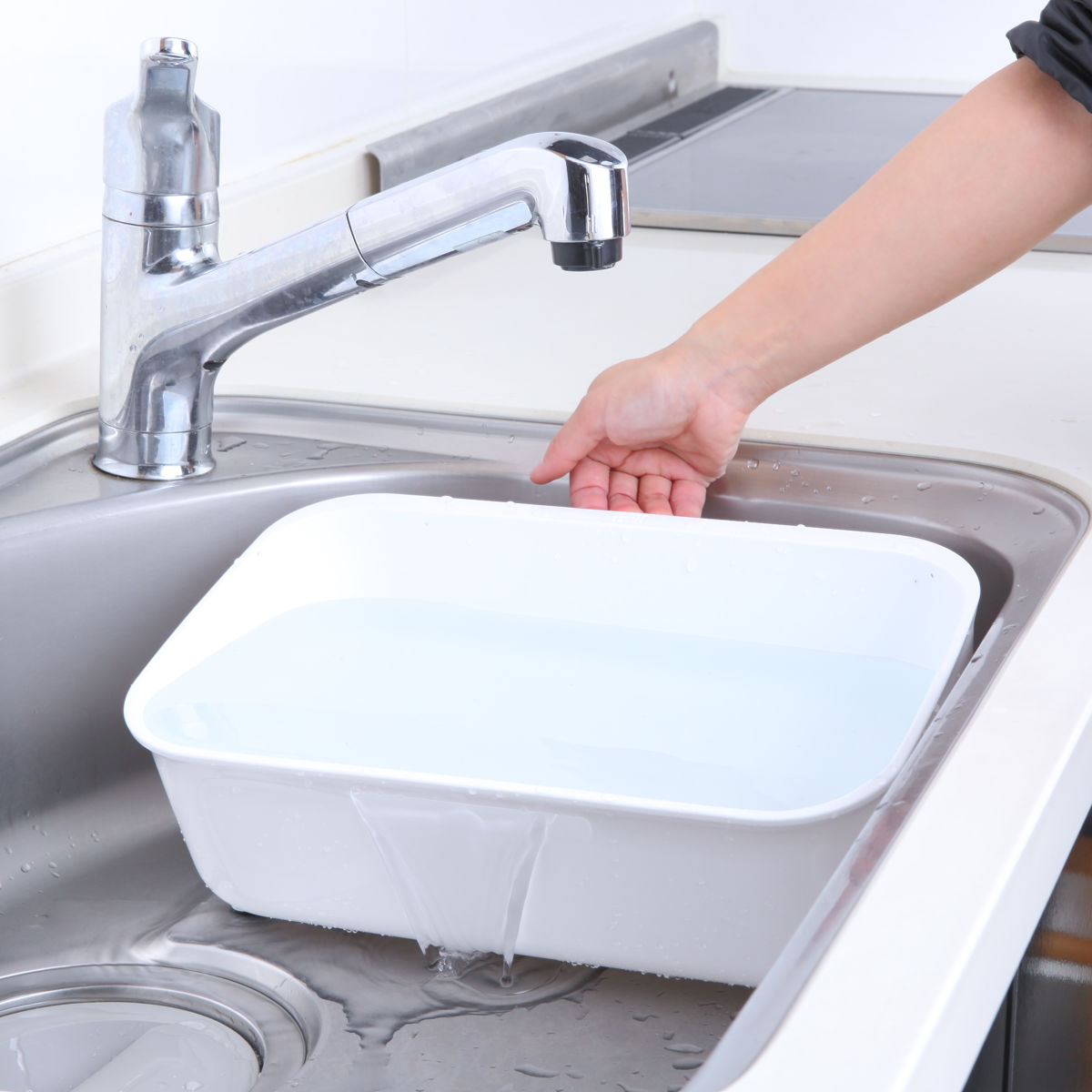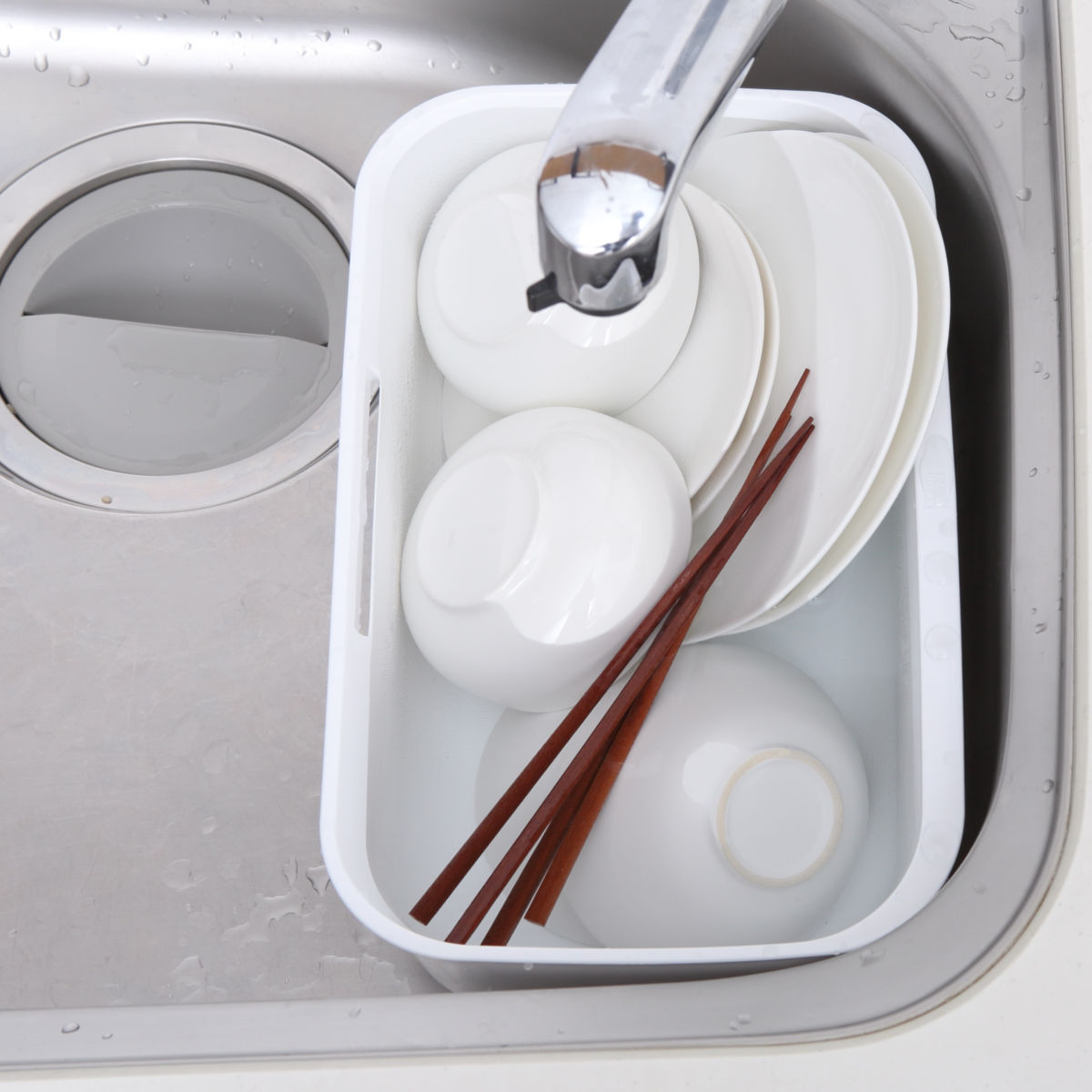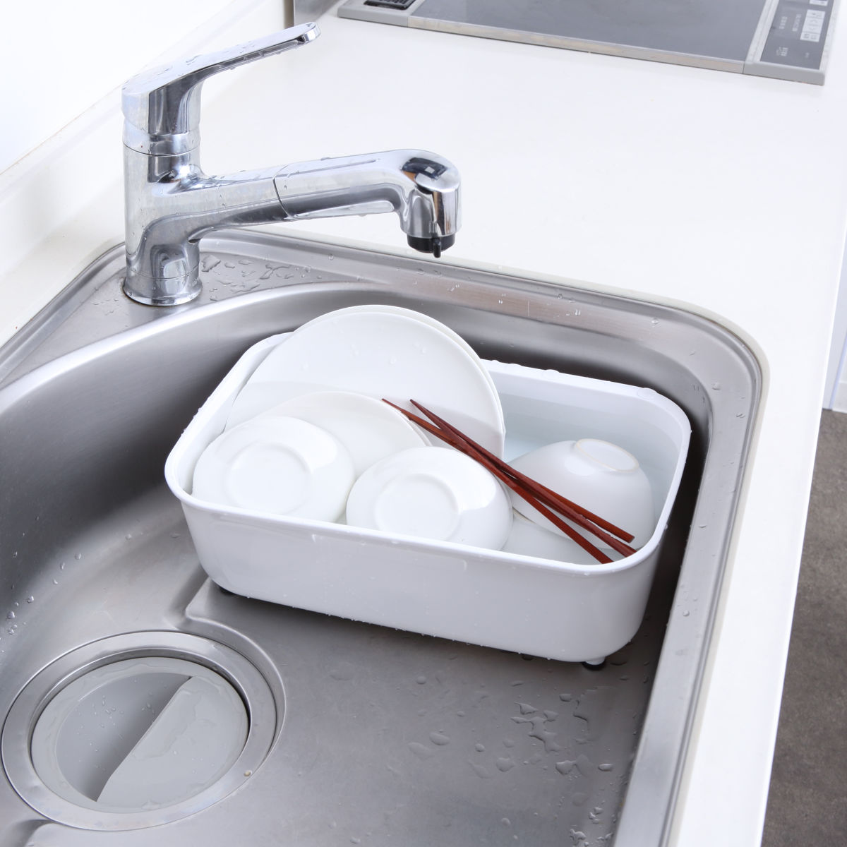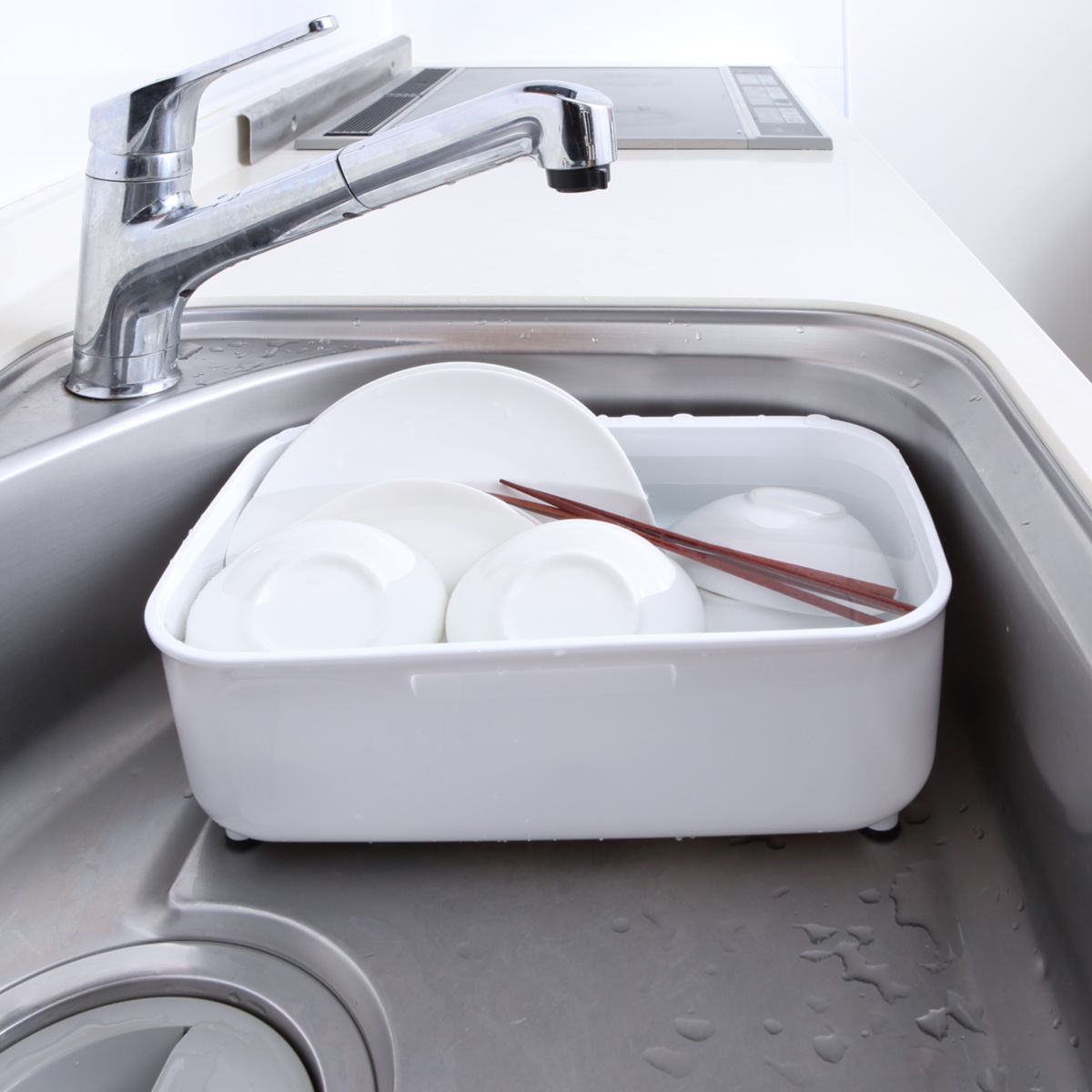 ちょこっと洗いにちょうどいい、コンパクトな洗い桶です。水切りラックの下にも収まる高さで、シンクを広く使うことができます。