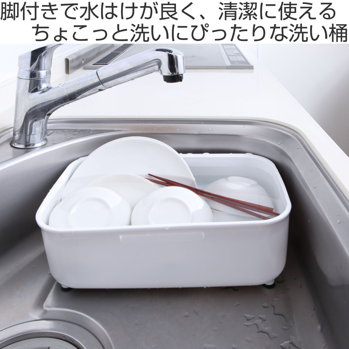 洗い桶 スリット付き コンパクトサイズ スマートホーム2 ( 洗桶 洗いおけ たらい タライ 桶 おけ 食器洗い つけ置き洗い すすぎ シンク周り 水周り 脚付き 野菜洗い 軽量 プラスチック 長方形 おしゃれ コンパクト ) 【ホワイト】