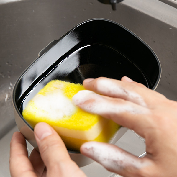 お弁当箱の内側には特殊な塗りを施しているので、汚れが落ちやすく、洗いやすいです。