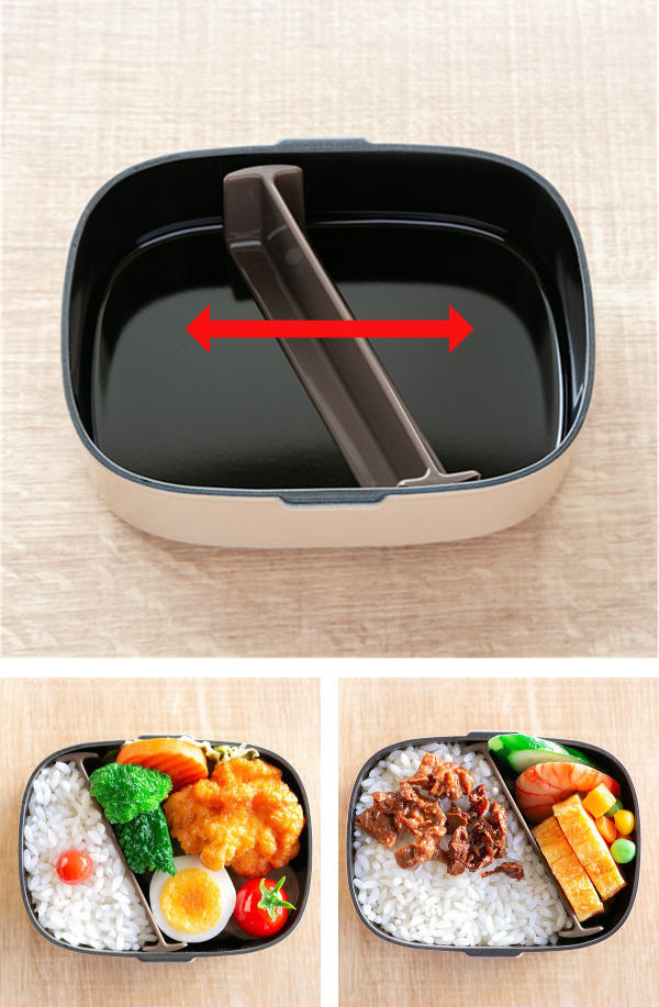 仕切りが動かせるのでお好みのご飯の量に調節できる