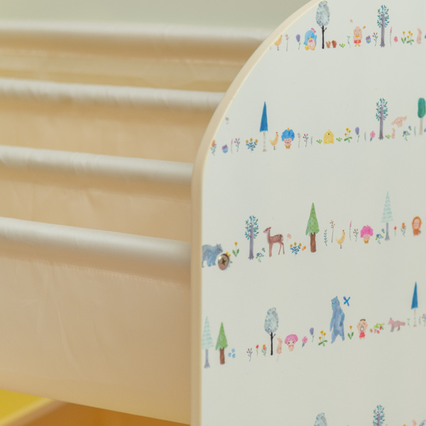 収納ラックの正面と側面にサンリオのキャラクターの絵柄がプリントされています。かわいい絵柄なので、片付けも楽しみながら行えます。