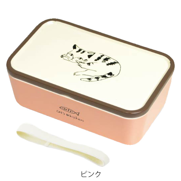 お弁当箱 1段 ネコ CATS Whiskers 600ml ランチボックス ( 食洗機対応 レンジ対応 弁当箱 一段弁当箱 女子 一段 仕切り付き ランチベルト付き 食洗機OK フタをしたまま レンジOK 1段お弁当箱 弁当 女子 かわいい 日本製 ) 【 ピンク 】