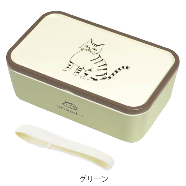 猫好きにはたまらない可愛らしい猫のイラストの一段弁当箱です。猫のひげを意味する「キャッツウィスカーズ」、手描き風のタッチが印象的なイラストは、よく見るとデザインにひげが強調されています。シリーズで揃えて一層可愛く、毎日のランチタイムをお楽しみいただけます。