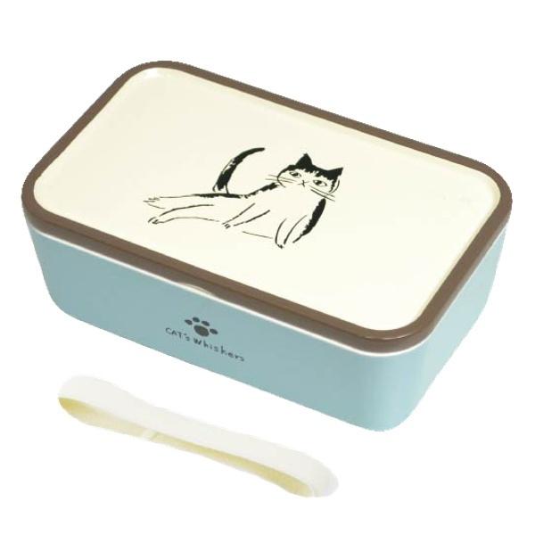 お弁当箱 1段 ネコ CATS Whiskers 600ml ランチボックス ( 食洗機対応 レンジ対応 弁当箱 一段弁当箱 女子 一段 仕切り付き ランチベルト付き 食洗機OK フタをしたまま レンジOK 1段お弁当箱 弁当 女子 かわいい 日本製 ) 【 ブルー 】