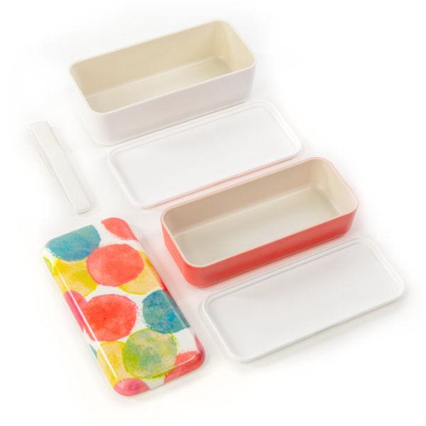 ●絵の具で描いた様なデザインがおしゃれな2段ランチボックスです。