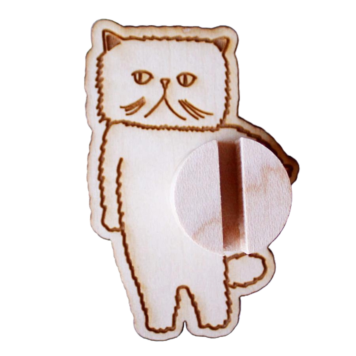 ケーブルクリップ コードクリップ 木製 両面テープ ネコ アニマル ( ケーブルホルダー コード 固定 クリップ 天然木 猫 プレゼント かわいい 日本製 壁 机 収納 整頓 充電ケーブル 充電コード 便利グッズ 貼るだけ ) 【ペルシャ】