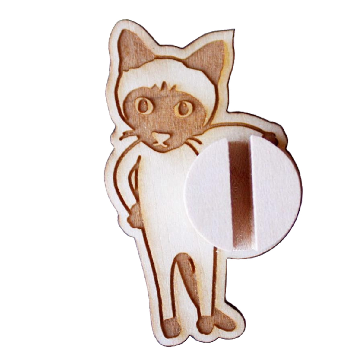 ケーブルクリップ コードクリップ 木製 両面テープ ネコ アニマル ( ケーブルホルダー コード 固定 クリップ 天然木 猫 プレゼント かわいい 日本製 壁 机 収納 整頓 充電ケーブル 充電コード 便利グッズ 貼るだけ ) 【シャム】