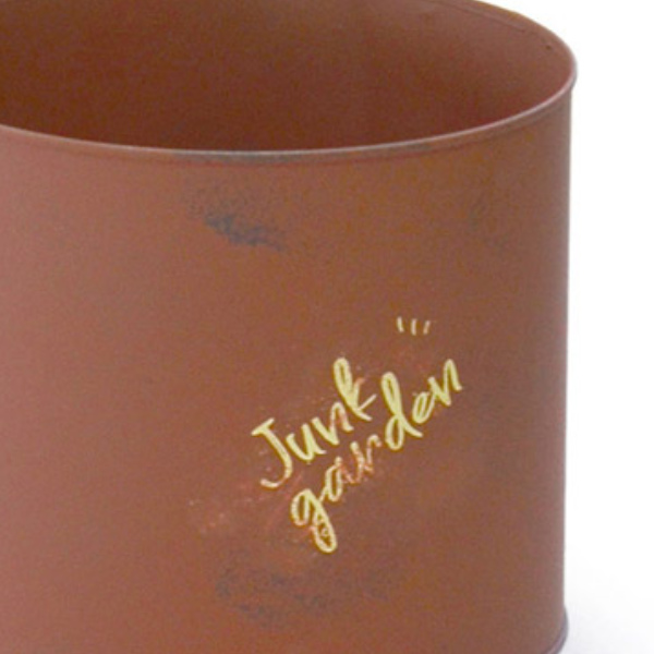 底穴ポットの底に穴があるので、植物を直接植えられます。また、プランターカバーとして、鉢をそのまま入れて楽しむこともできます。 | アンティーク調の塗装サビれた雰囲気や塗装が剥がれたような加工がグリーンやフラワーをより一層際立てます。 |