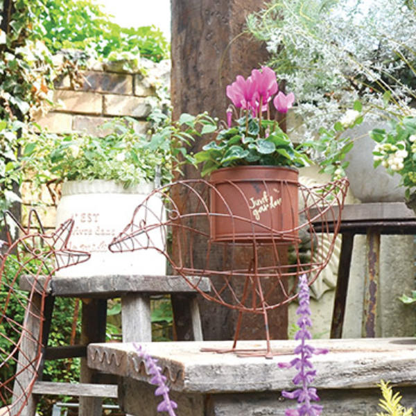 ●立体的な鳥のワイヤープランターに草花を入れたポットが映える可愛らしいプランターです。
