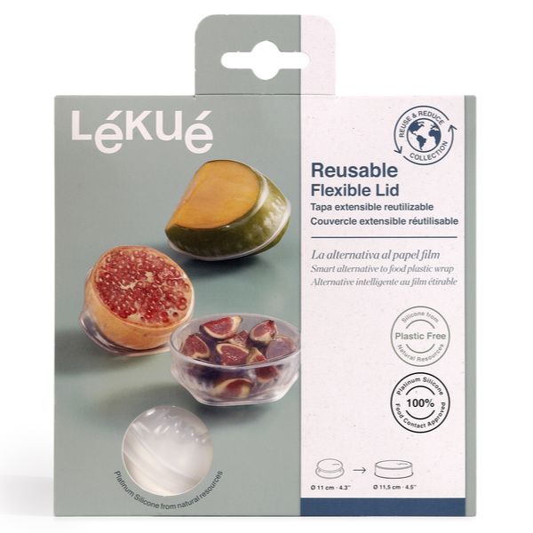 直径 約11.5~14cmまで伸縮し、食器や食材にかぶせるとぴったりと密着します。柔らかい素材で様々な形状にフィットし、洗って何度も繰り返し使用ができます。使い捨てラップや保存袋のゴミが減るのでエコで経済的です。