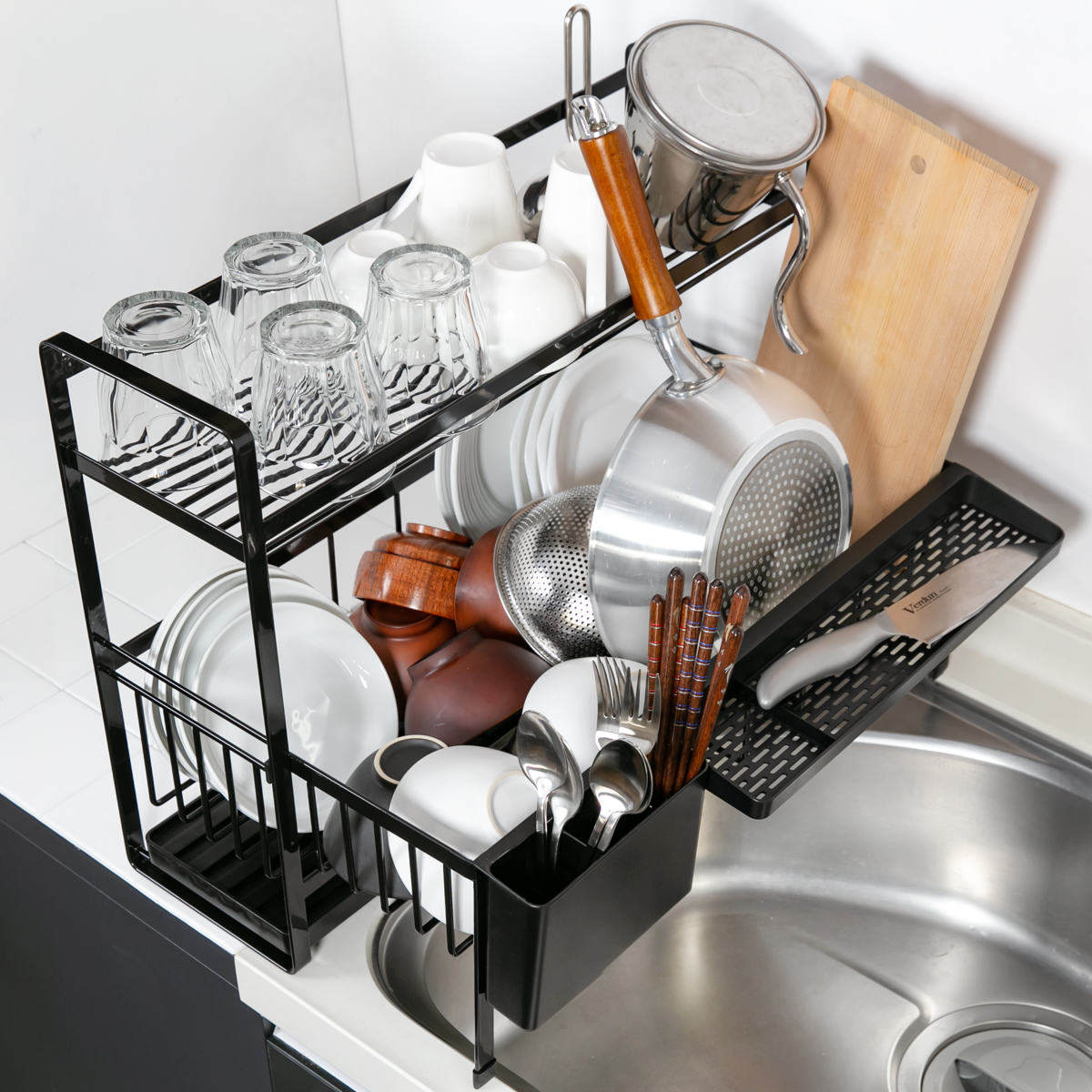 内かごをサッと引き出すだけで好きな大きさで使用できます。来客時など洗い物が多い時やフライパンや鍋も一緒に乾かしたい時に便利です。スチール製なので、重たい物を置いても安定感抜群です。