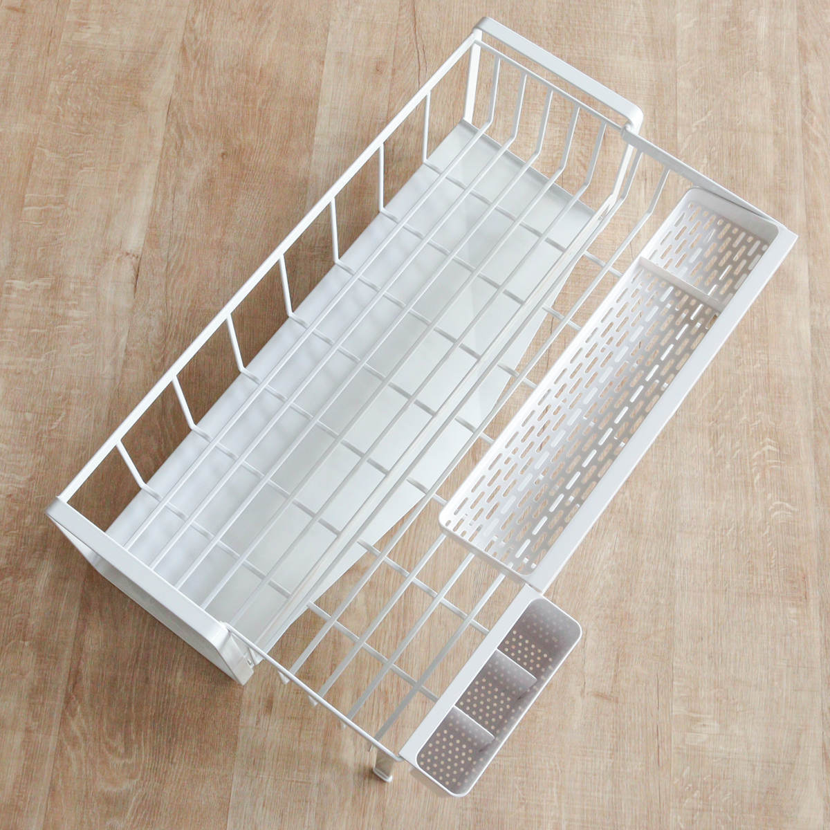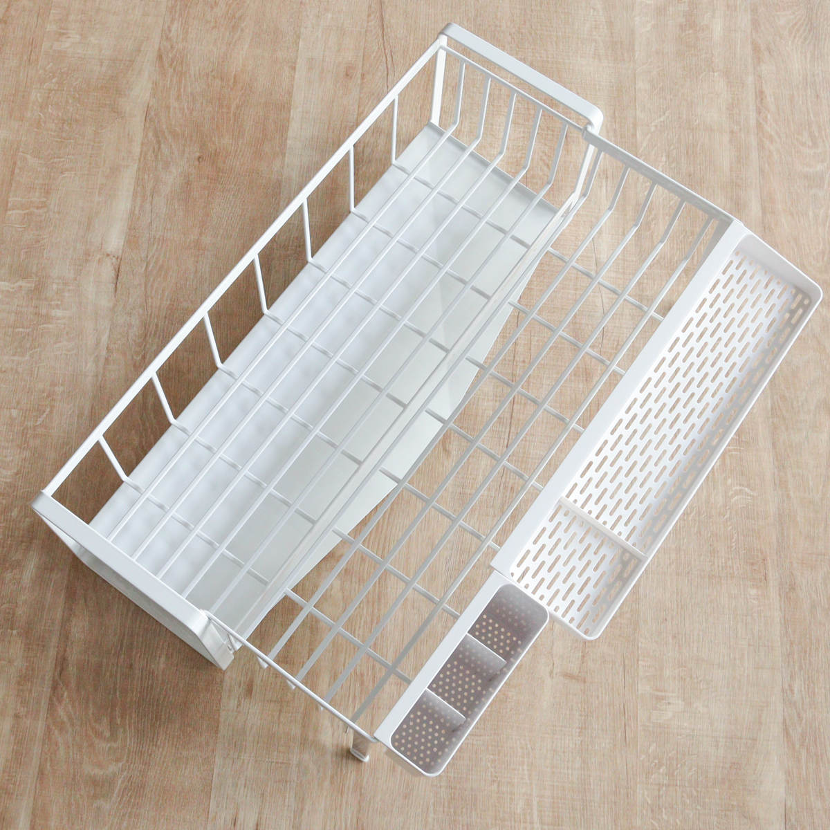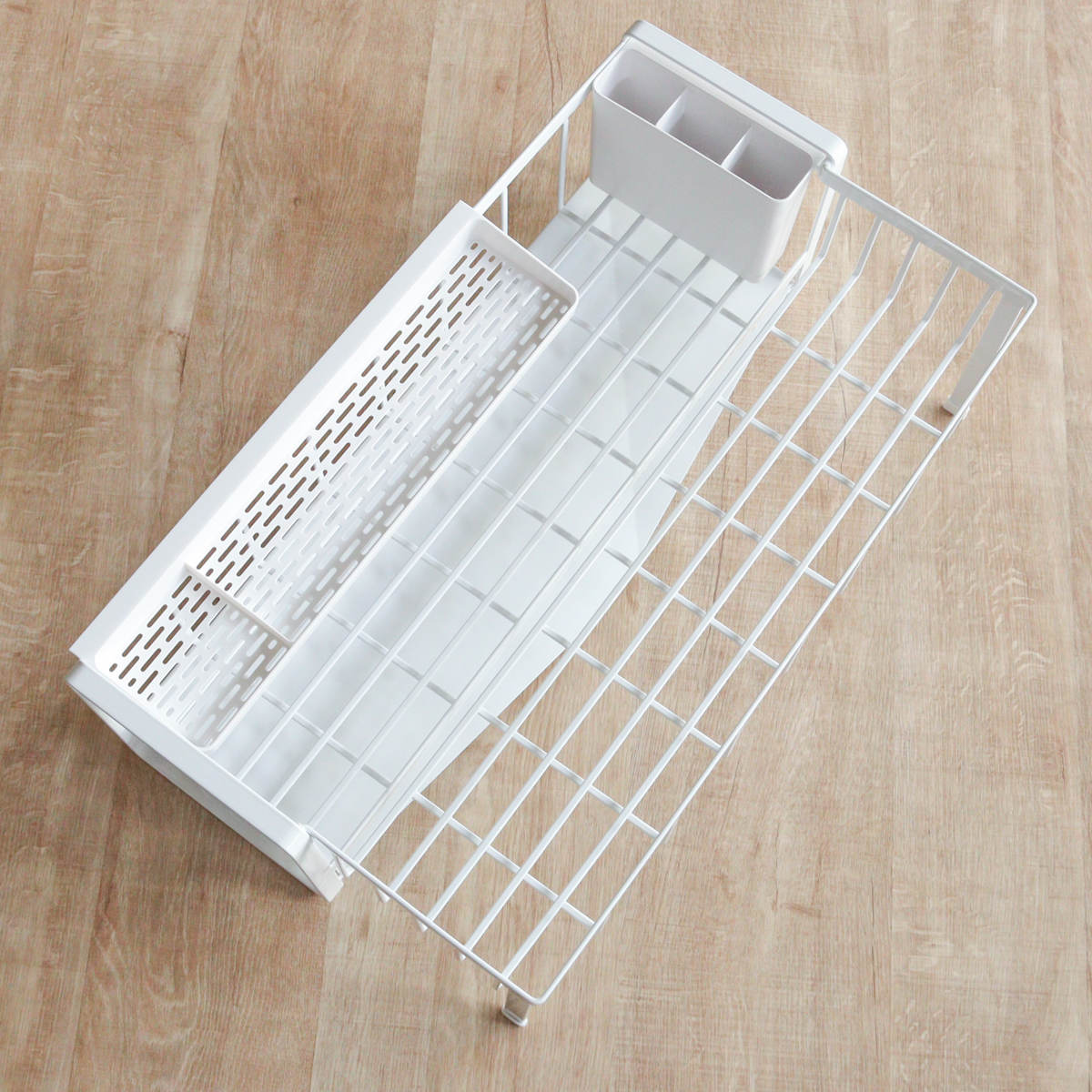 | 材質 | ワイヤーバスケット:スチール(ユニクロメッキ+粉体塗装) 水切りトレー・カトラリーポケット・カトラリートレー:ABS樹脂 水はけ:ポリプロピレン 水止栓・キャップ:シリコーン |