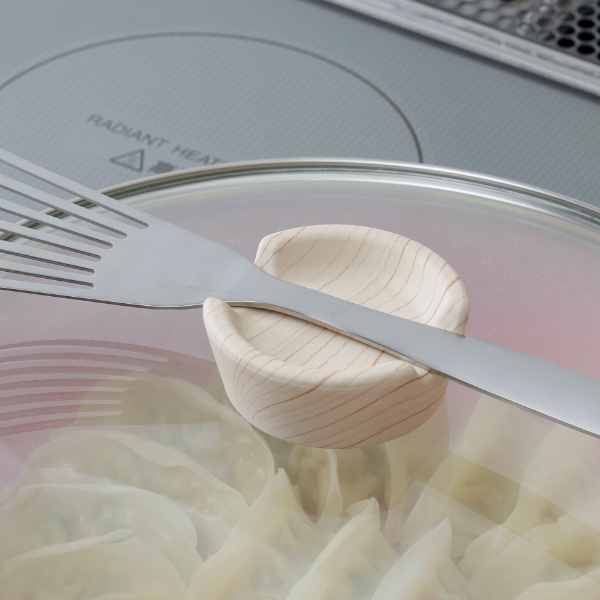 ●つまみ部分は、ターナー菜箸などが置ける凹み付きなので調理中の一時置きに便利です。