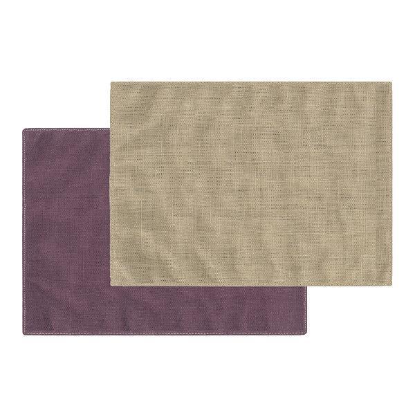ランチョンマット 46cm リンネ Linne リバーシブル 麻 プレースマット ランチマット 同色5枚セット ( ランチョン マット 布 洗える おしゃれ リネン 洗濯機対応 プレイスマット 敷布 テーブルコーディネート ) 【 ベージュ×ダークパープル 】