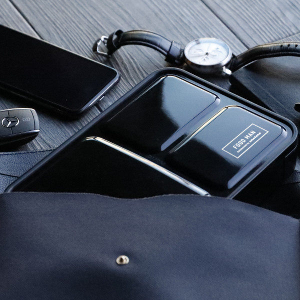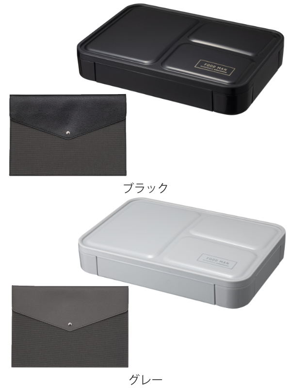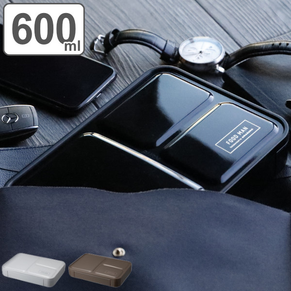 お弁当箱 1段 薄型弁当 フードマン レザーケース付き 600ml ランチボックス 仕切付き ( 弁当箱 FOODMAN レンジ対応 食洗機対応 弁当 ランチグッズ お弁当グッズ 大人 女子 メンズ 男子 一段 一段弁当箱 スリム シンプル 汁漏れ ) 【 ブラック 】
