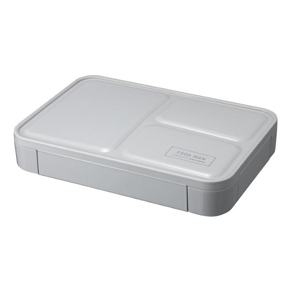 お弁当箱 1段 薄型弁当 フードマン レザーケース付き 600ml ランチボックス 仕切付き ( 弁当箱 FOODMAN レンジ対応 食洗機対応 弁当 ランチグッズ お弁当グッズ 大人 女子 メンズ 男子 一段 一段弁当箱 スリム シンプル 汁漏れ ) 【 グレー 】