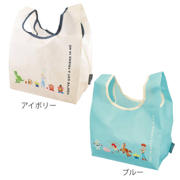 エコバッグ 折り畳み式 TOYSTORY トイストーリー ( マイバッグ エコバック ショッピングバッグ お買い物バッグ レジバッグ レジ袋 折りたたみ コンビニ コンビニサイズ コンビニ弁当 マチ広 キャラ キャラクター ディズニー ) 【 アイボリー 】
