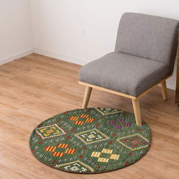 ラグ ウールラグ Kuumuus ヤード 直径約90cm ( ラグマット カーペット 絨毯 マット 円形 ウール ノルディック柄 温かい 床暖対応 ホットカーペット対応 玄関 リビング 北欧風 インテリア ) 【 グリーン 】