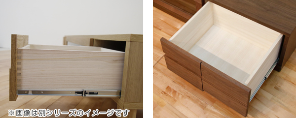 | 材質 | 表面材:天然木無垢(ウォールナット) 天板:強化シート 引出し:桐材(ロッキング組) 塗装:オイル仕上げ |
