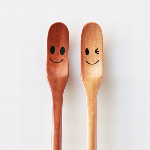 スプーン 19cm マドラースプーン ニコニコ&ウィンク 木製 サオ 籐芸 同柄5本セット ( マドラー スマイル ニコちゃん 顔 カトラリー パフェスプーン 木 おしゃれ かわいい カフェ風 洋食器 木製食器 ) 【ウインク】のレビュー