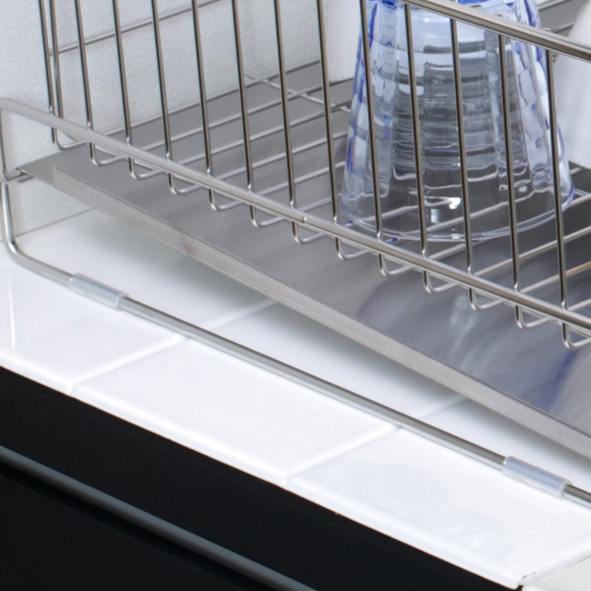 傾斜のついた付属のトレーは、ワイヤーの間から落ちた水が自然にシンクへ流れる構造となっており、トレーに水が溜まらずヌメリやカビを予防できます。