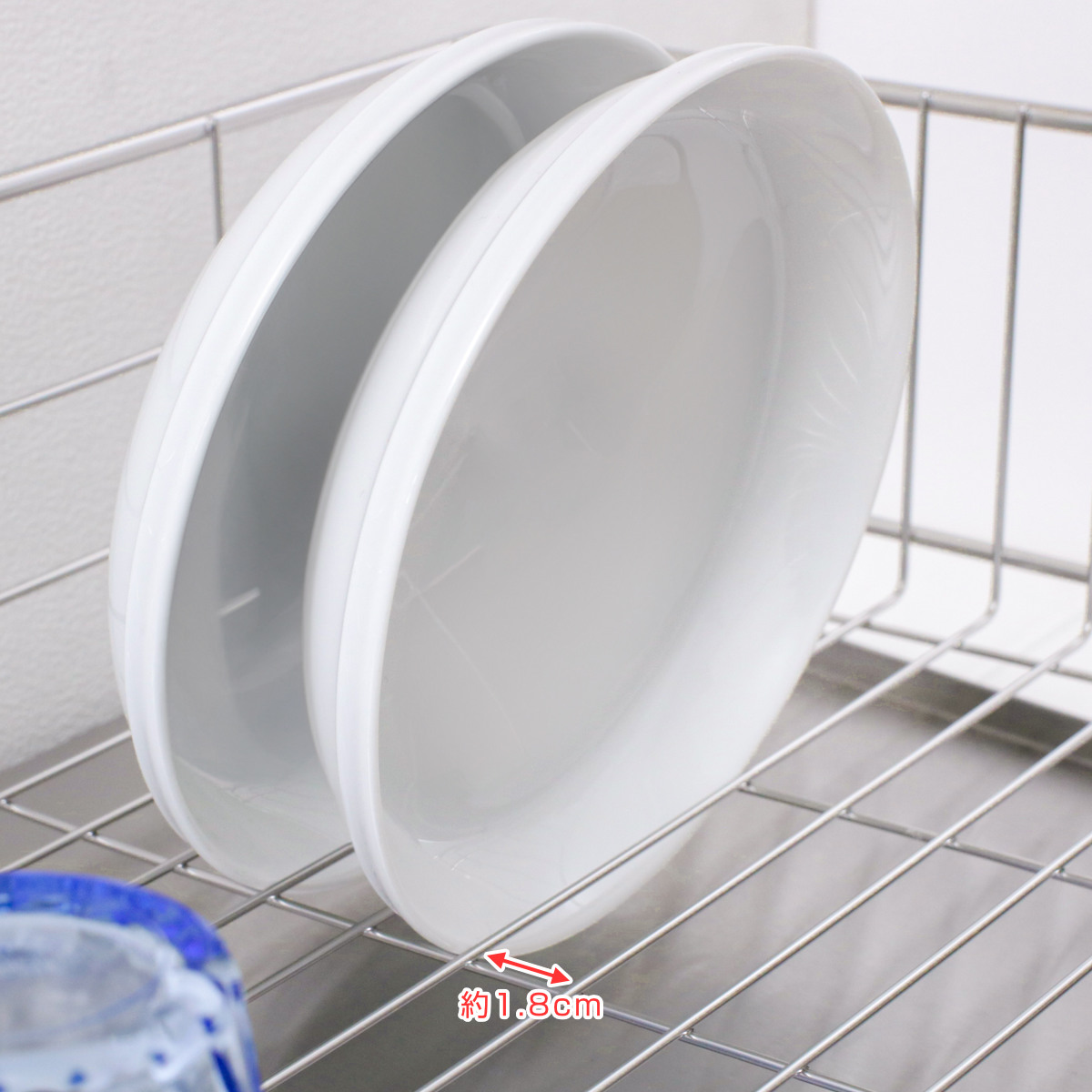 お皿同士がくっつきすぎない、約1.8cm間隔のワイヤータイプ。お皿をしっかり立てて水切りができるので、乾きが早くいつも清潔を保つことができます。