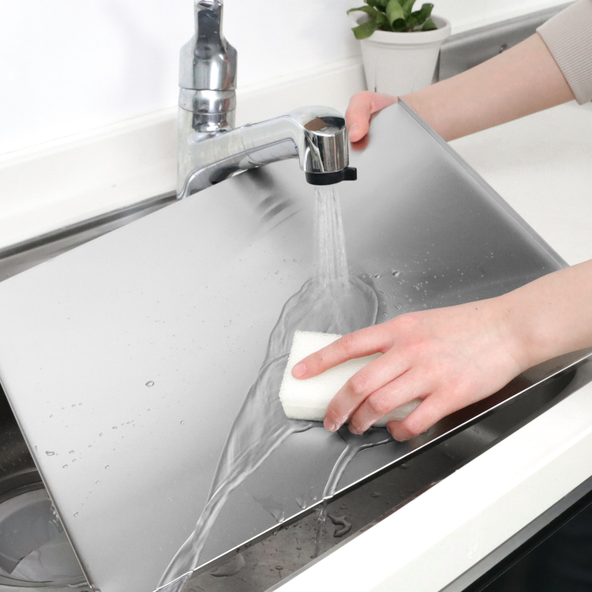 フレームにはすべり止めゴムが付属しています。シンクの周りを傷つけにくく、水周りでも安定感のある使い心地です。