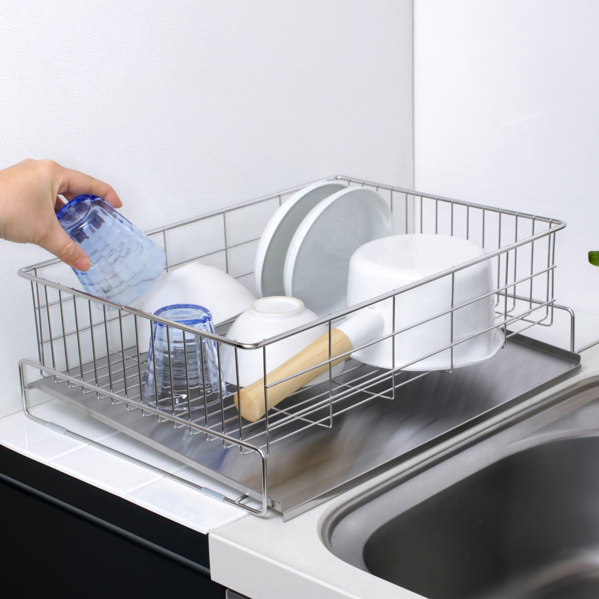 食器だけでなくお鍋やフライパン、調理器具などもまとめて収納できます。食洗機のサブ水切りとして使うのもおすすめです。